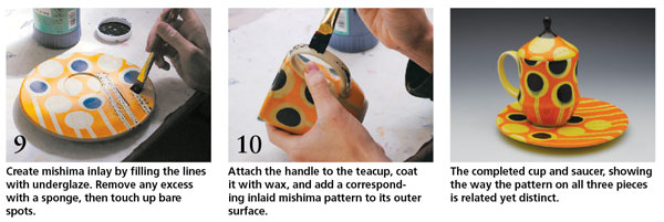 Carrying a Design Through a Set with Underglaze Color, Mishima, and Stencils