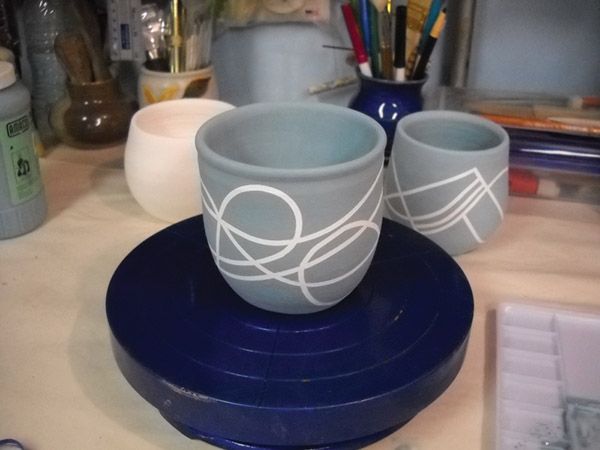 Getting a super fine line when glazing your pots is often difficult—and even more so when you’ve had a few cups of coffee before heading into the studio. Try using this tape resist technique to glide over curves and around handles when decorating your next great set of coffee cups.